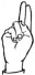 На ћирилици написано ДИНА КОМНЕНОВИЋ састоји се из 14 слова [?]. Исписано ћириличном једноручном азбуком за глувонеме: